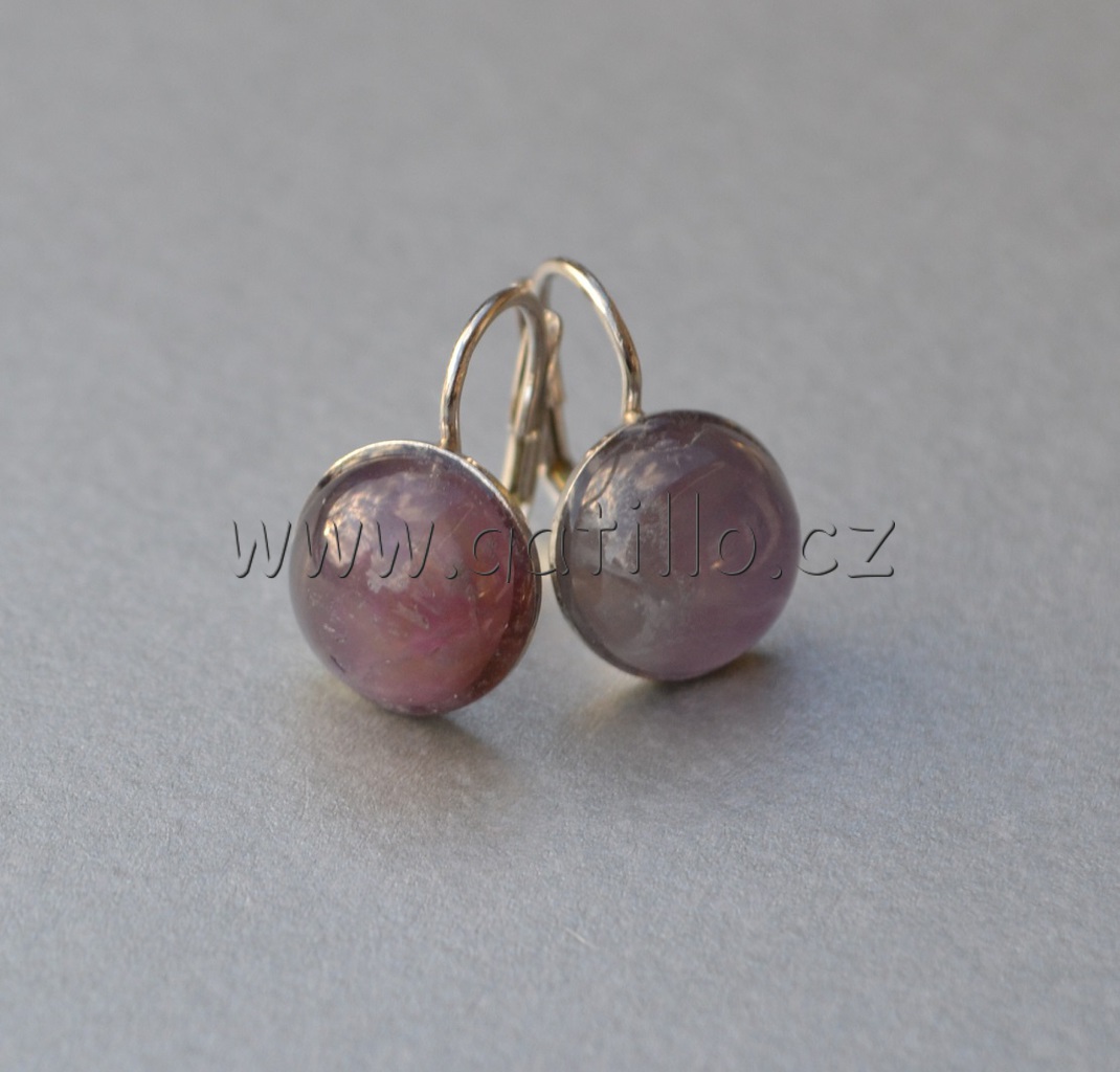 Stříbrné náušnice s kabošonem z lametystu, lepeném na stříbrné misce s anglickým zapínáním, označeném ryzostním číslem, průměr kamene 10 mm. Materiál zapínání AG925/1000, RHODIOVÁNO.