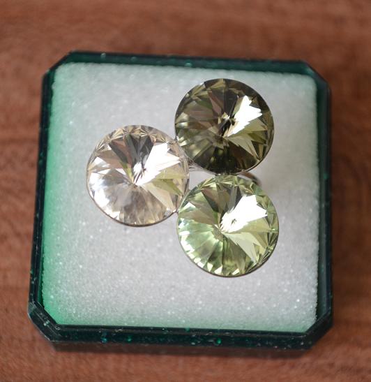 Lepený prsten v barvě stříbra se třemi kameny RIVOLI Made with Swarovski® Elements v odstínu Crystal-Chrysolite-Black diamond, přizpůsobivá velikost kroužku, průměr kamene 12mm.