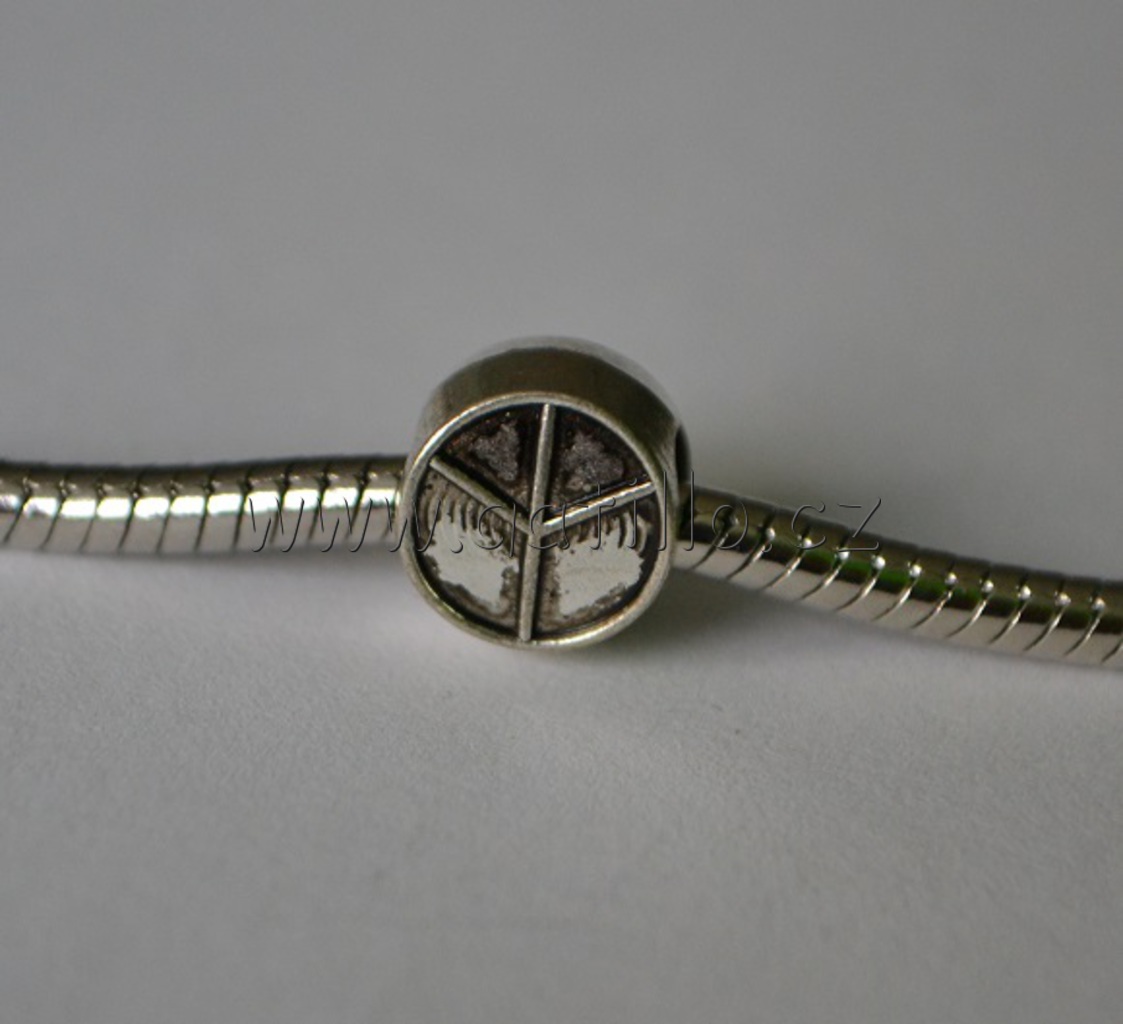 Kovový korálek s velkou dírkou vhodný na široké náramky ve stylu Pandöra nebo Trollbeads.