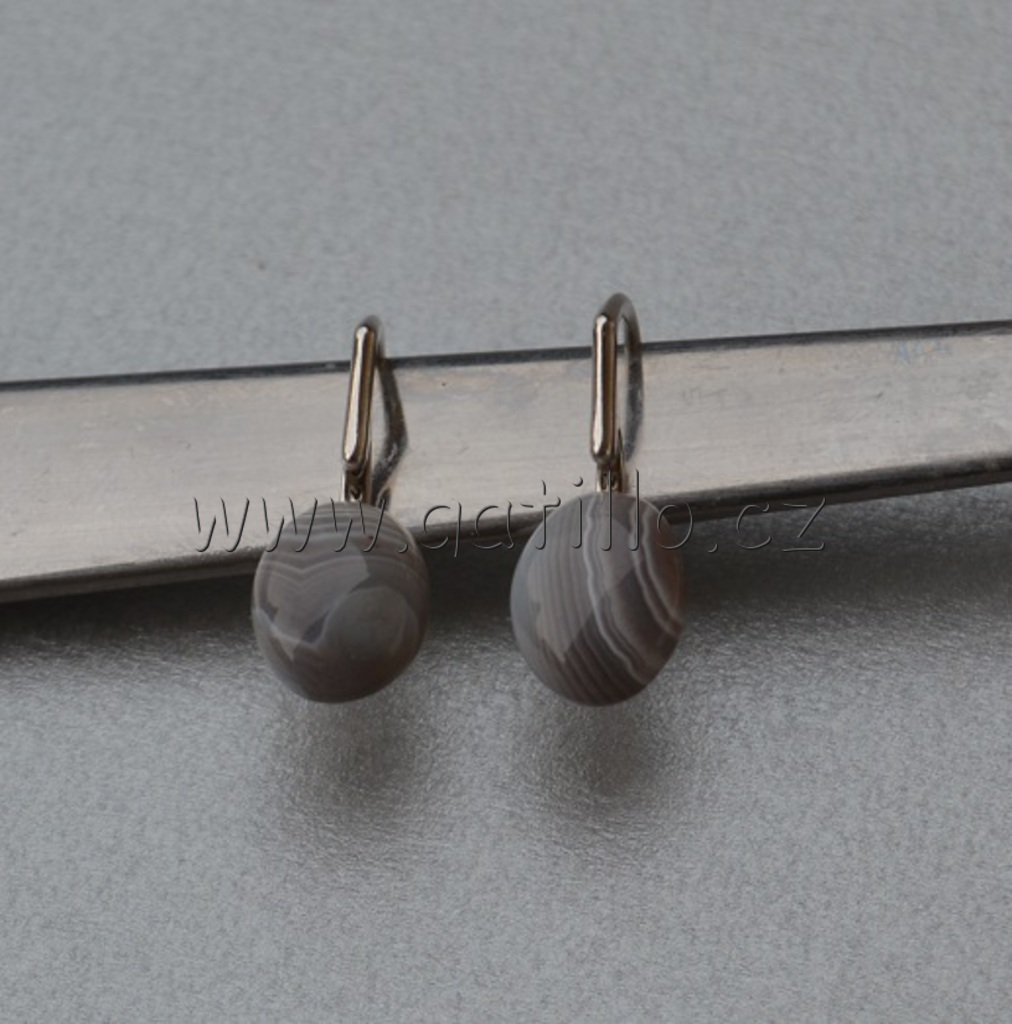 Stříbrné náušnice s kabošonem achátu, lepeným na anglickém háčku označeném ryzostním číslem, rozměr cca 12x6 mm.